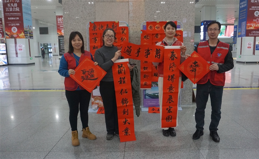 1月23日上午軌道地產(chǎn)建筑公司黨支部與南湖街道屯里社區(qū)黨總支攜手,南寧火車東站南廣場開展一場別開生面的送春聯(lián)、贈福字活動。社區(qū)黨員與企業(yè)黨員志愿者積極參與,為奔波在春運途中的人們送去滿滿溫暖與新春祝福。